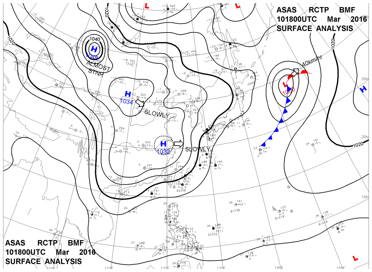 2016/03/10 18z sfcmap 天氣圖