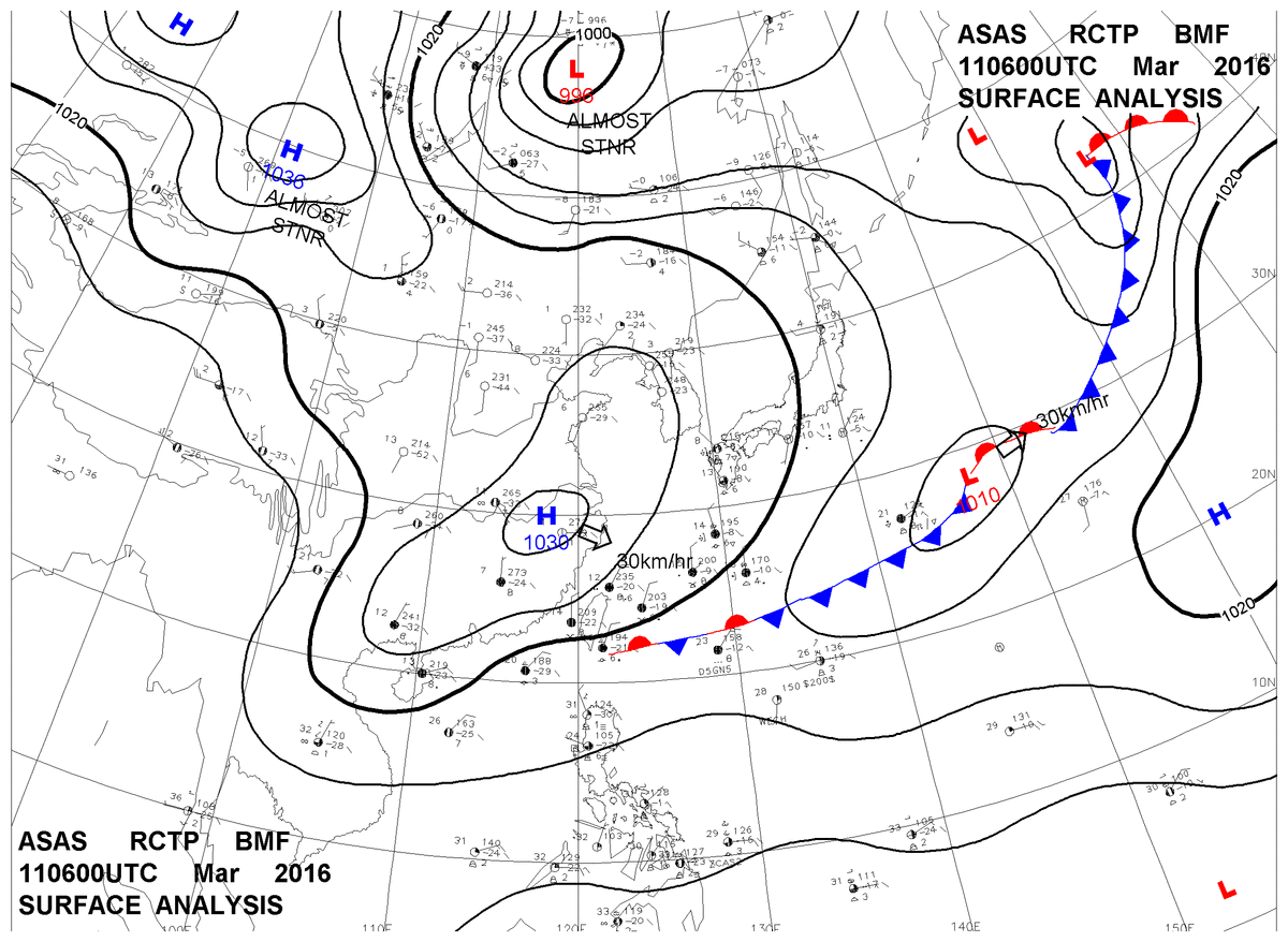 2016/03/11 06z sfcmap 天氣圖