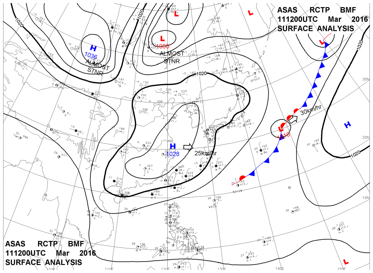 2016/03/11 12z sfcmap 天氣圖