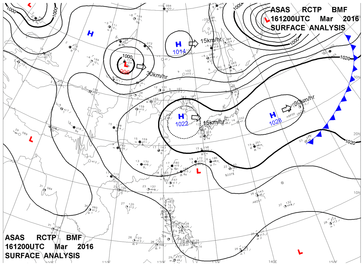 2016/03/16 12z sfcmap 天氣圖