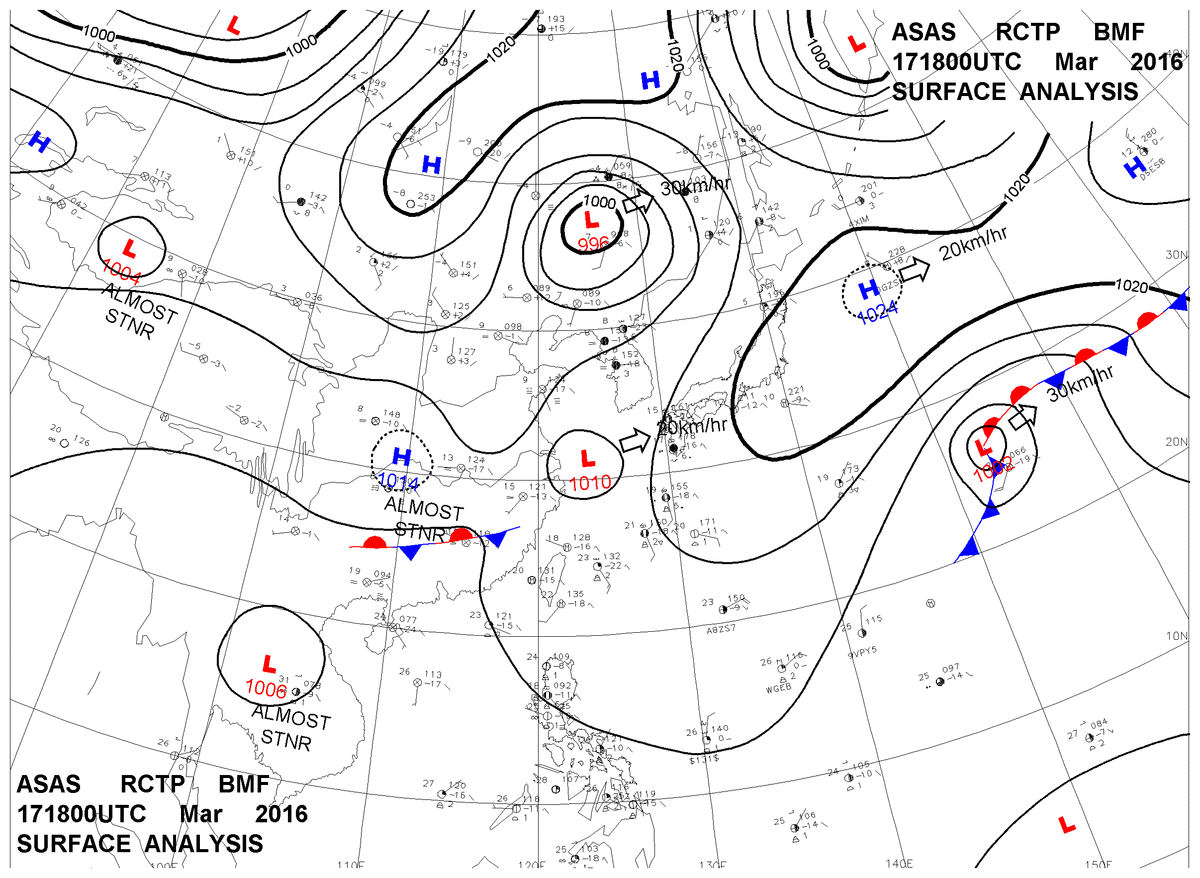 2016/03/17 18z sfcmap 天氣圖