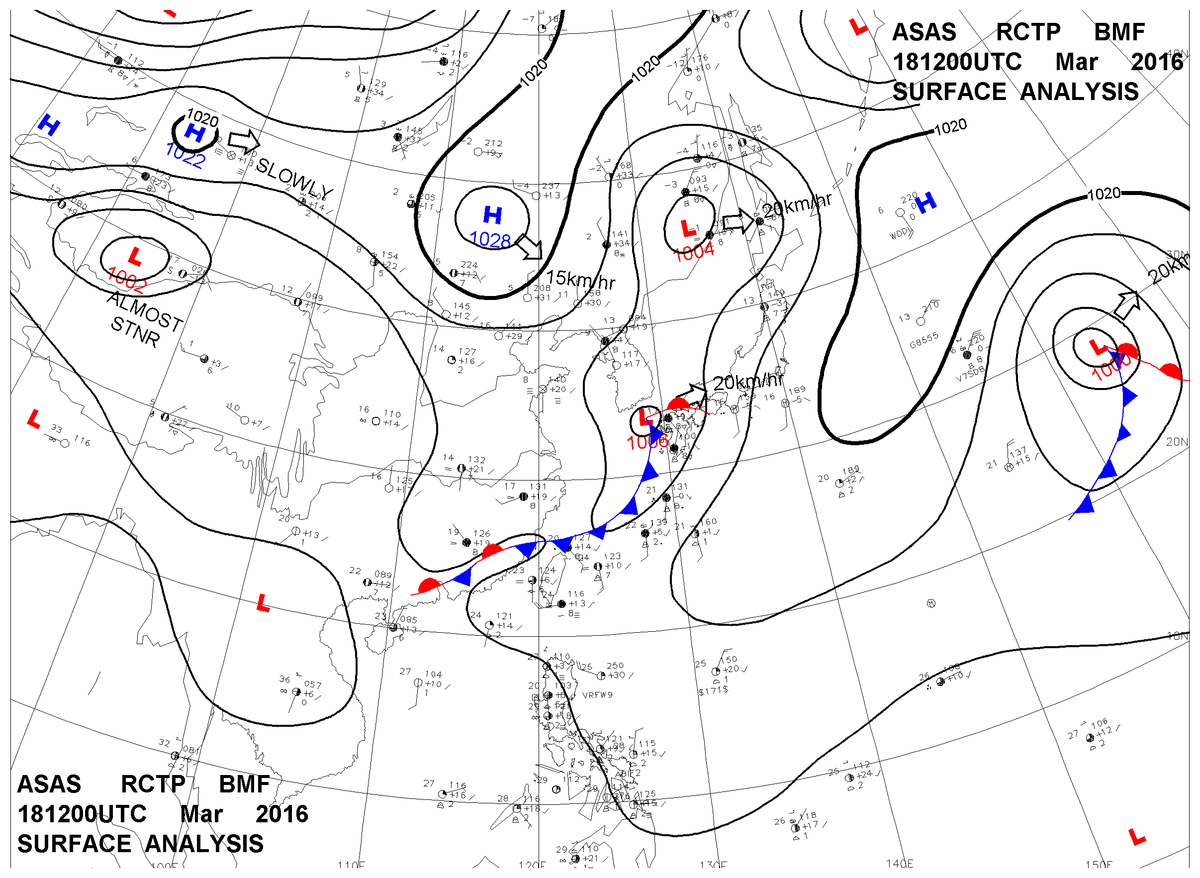 2016/03/18 12z sfcmap 天氣圖