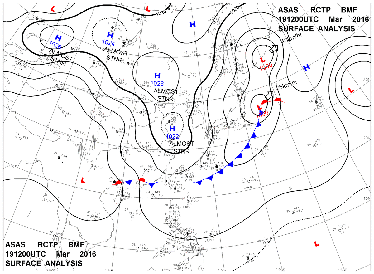 2016/03/19 12z sfcmap 天氣圖