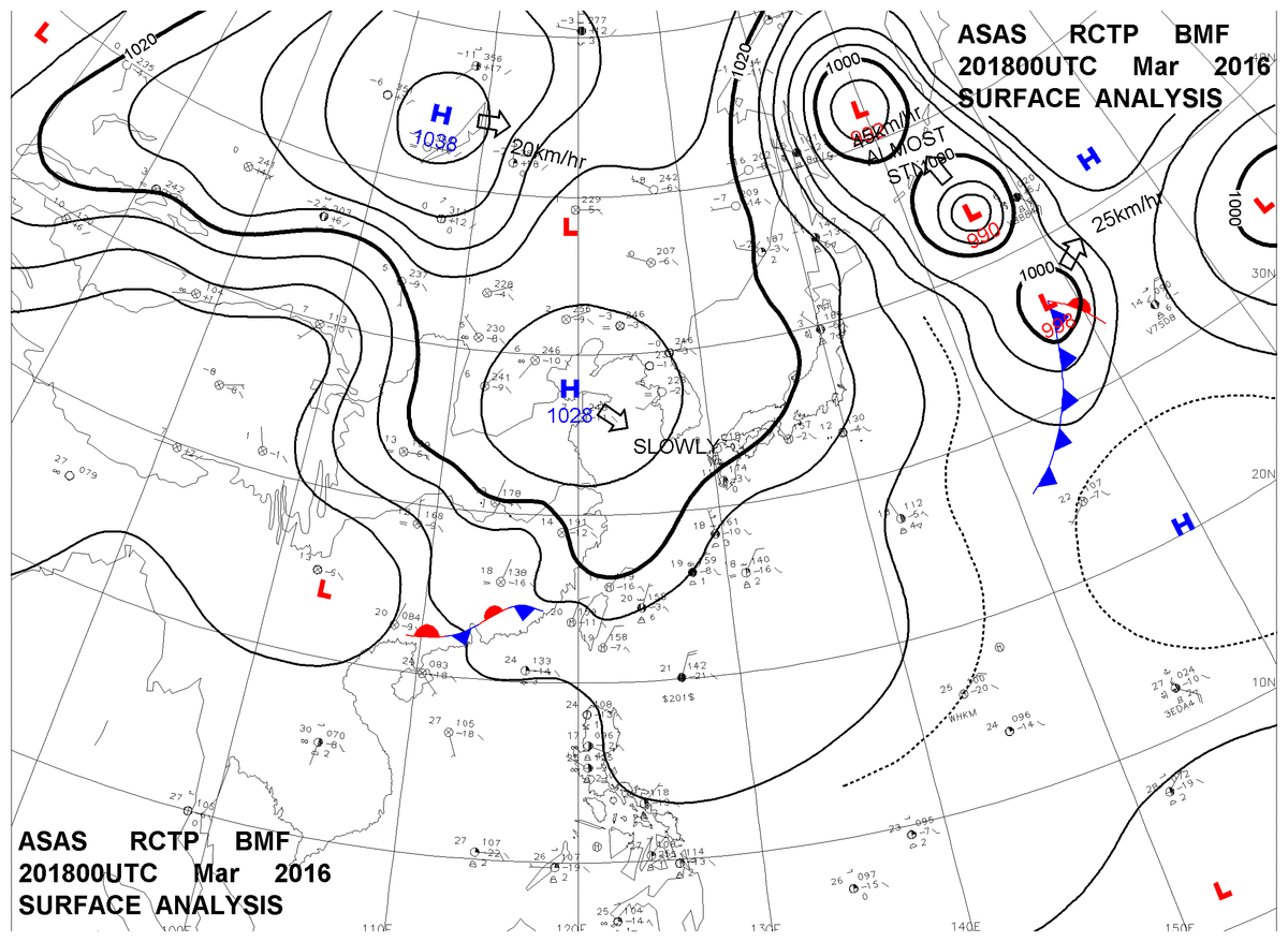 2016/03/20 18z sfcmap 天氣圖