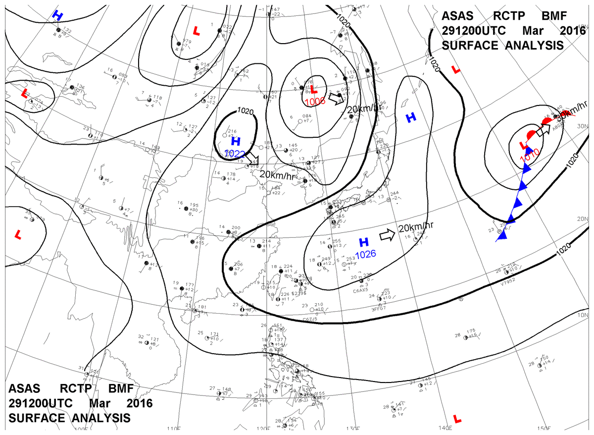 2016/03/29 12z sfcmap 天氣圖
