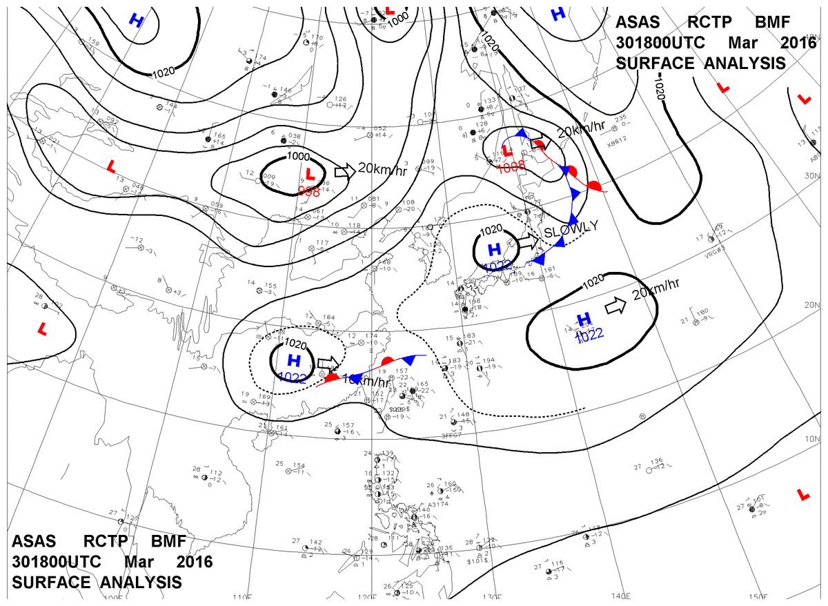 2016/03/30 18z sfcmap 天氣圖