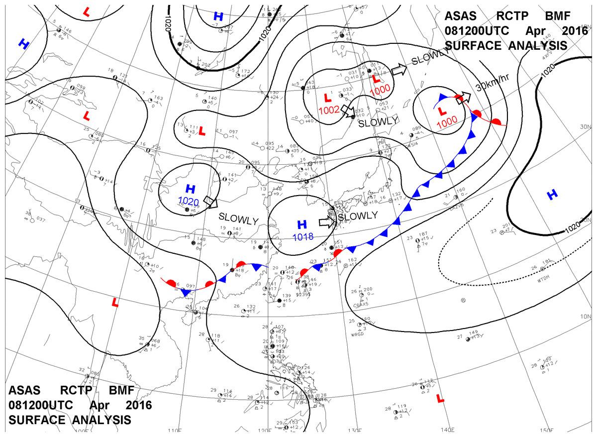 2016/04/08 12z sfcmap 天氣圖