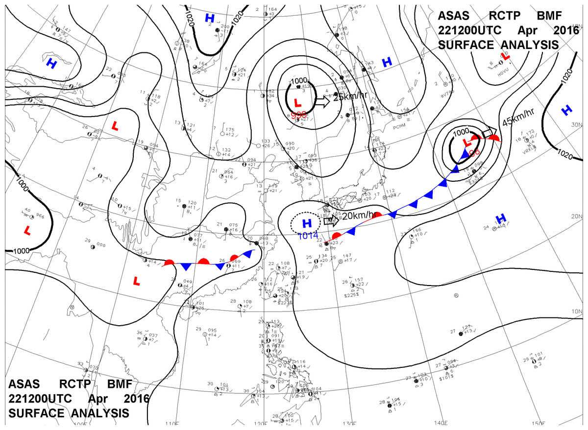 2016/04/22 12z sfcmap 天氣圖
