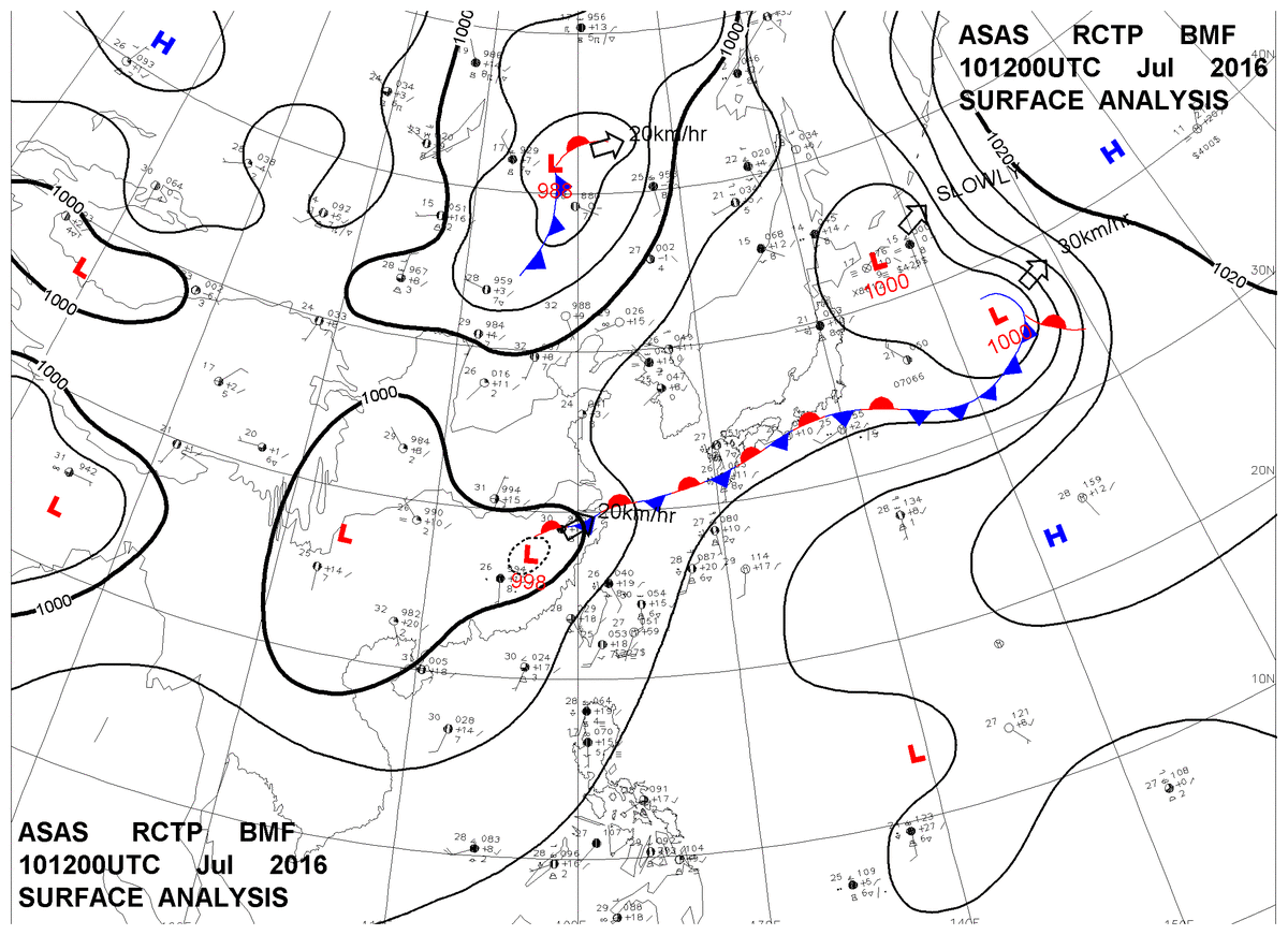 2016/07/10 12z sfcmap 天氣圖
