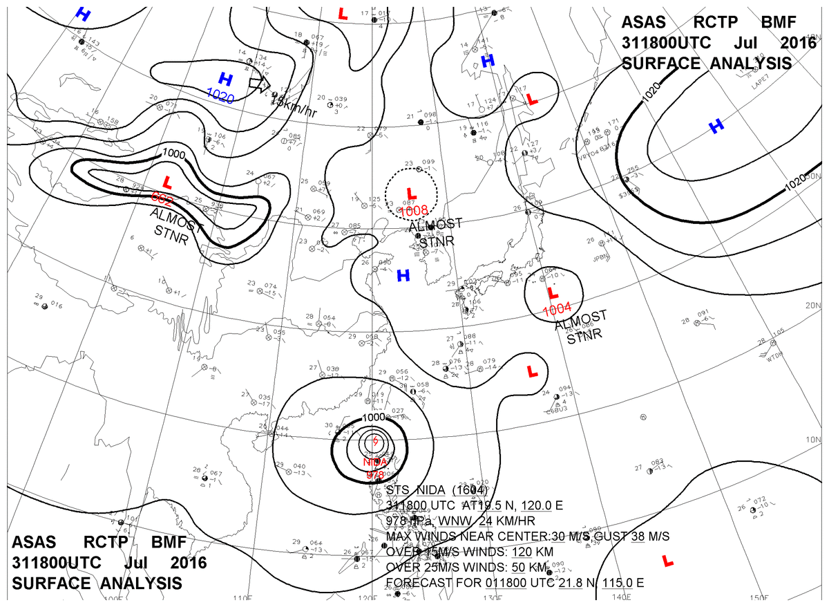 2016/07/31 18z sfcmap 天氣圖