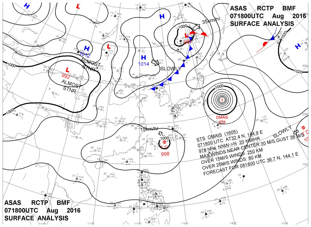 2016/08/07 18z sfcmap 天氣圖