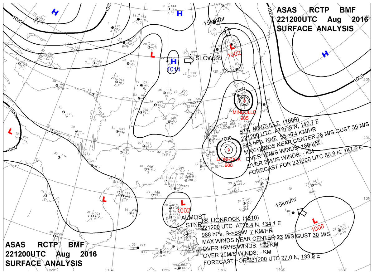 2016/08/22 12z sfcmap 天氣圖