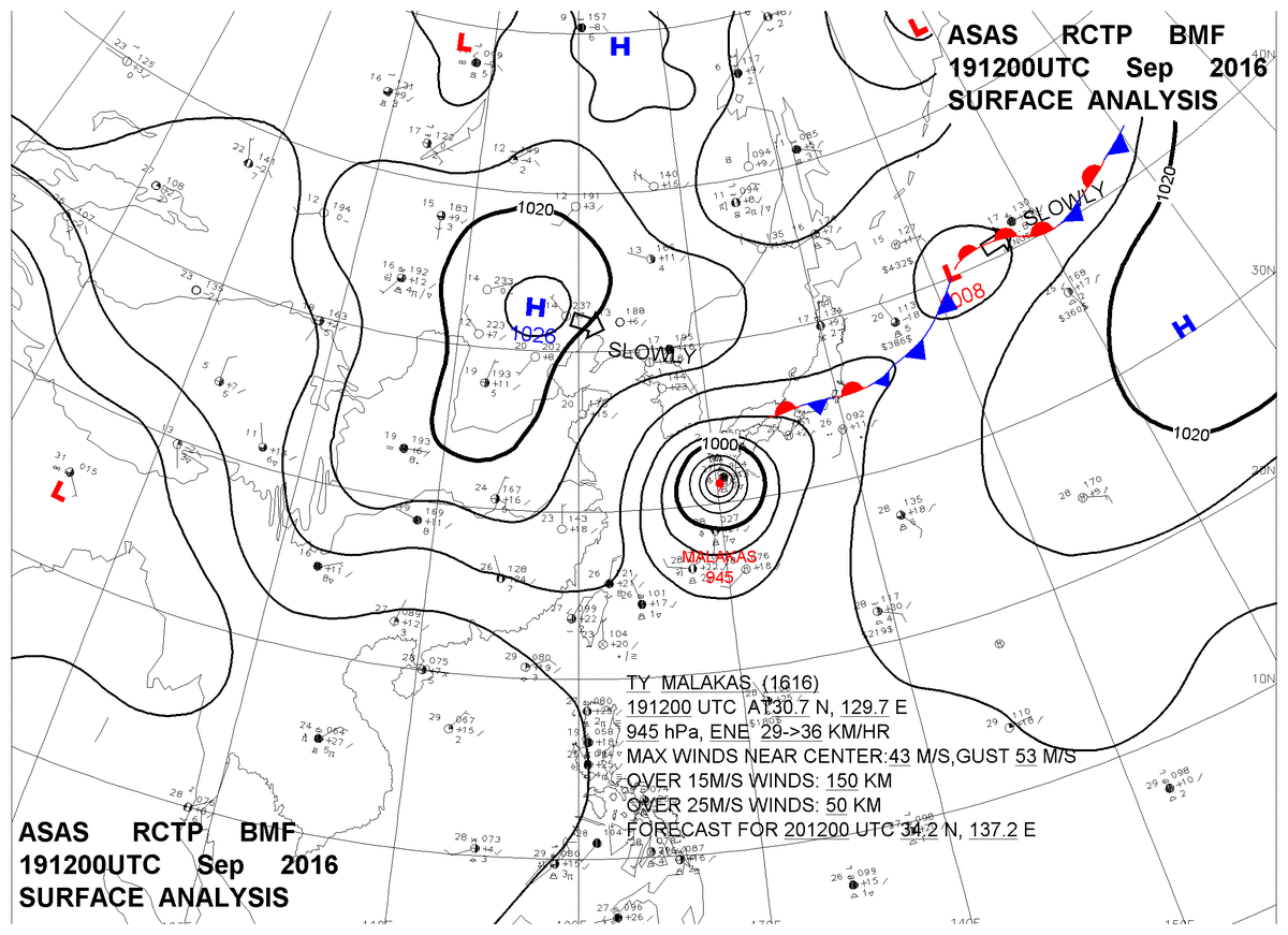 2016/09/19 12z sfcmap 天氣圖
