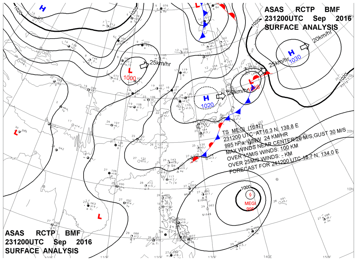 2016/09/23 12z sfcmap 天氣圖