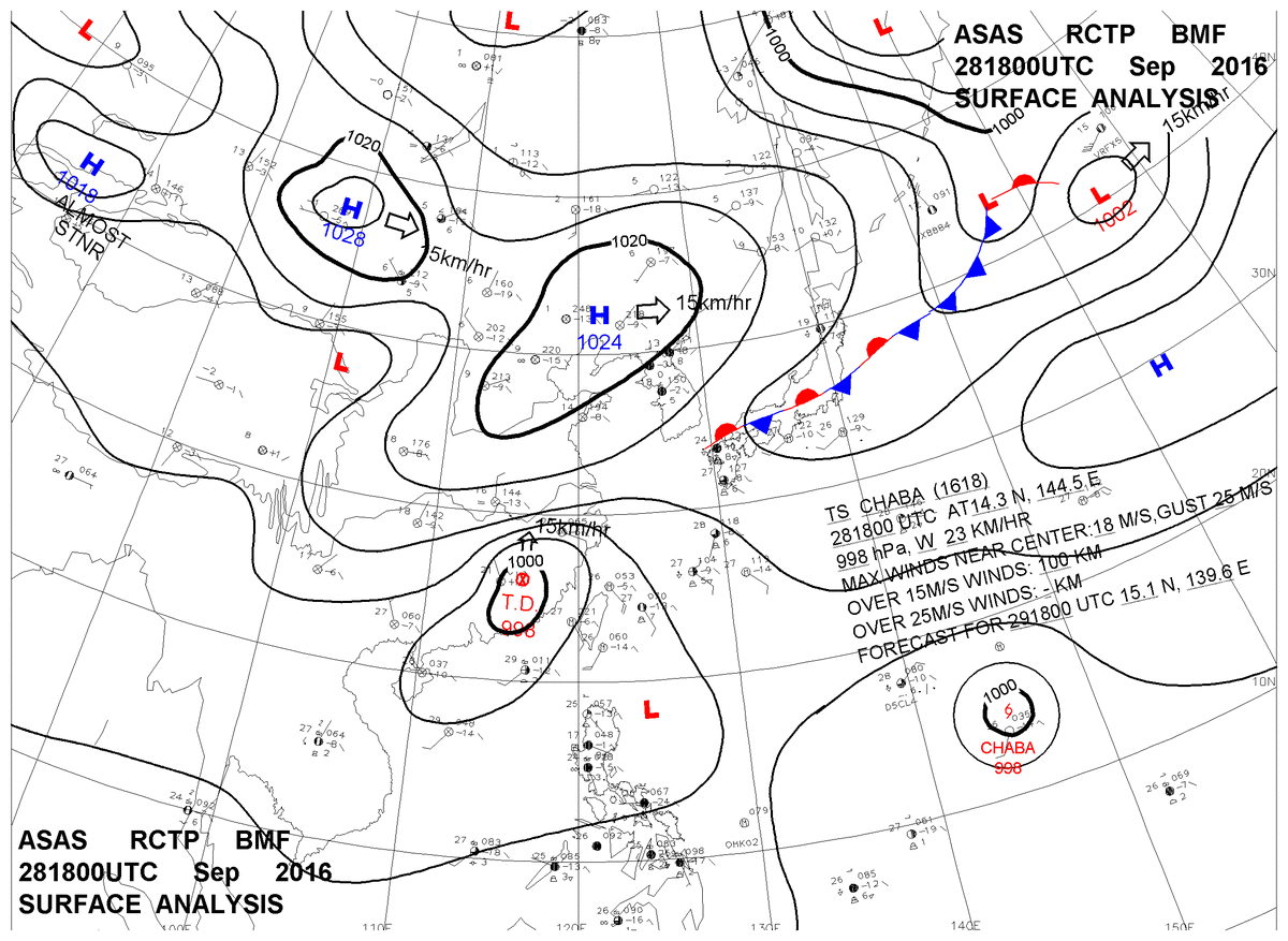 2016/09/28 18z sfcmap 天氣圖
