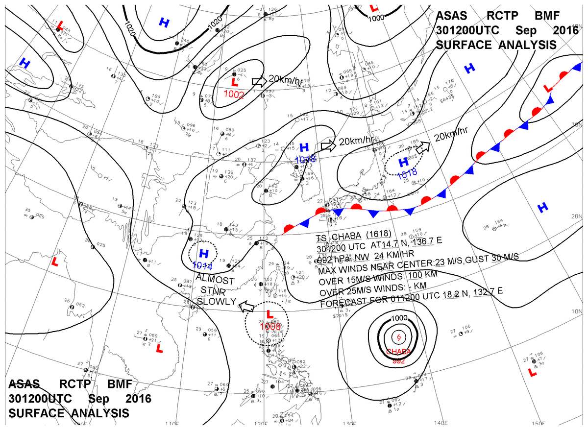 2016/09/30 12z sfcmap 天氣圖