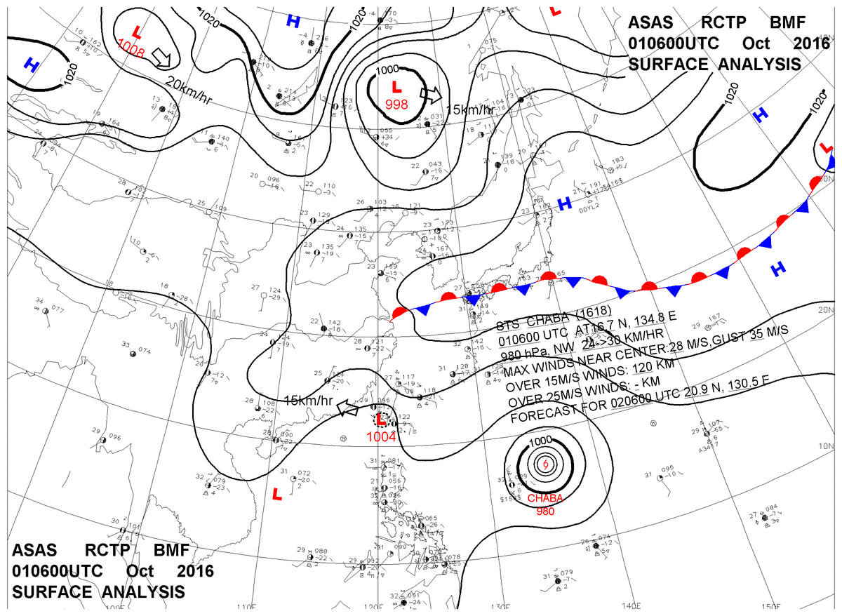 2016/10/01 06z sfcmap 天氣圖