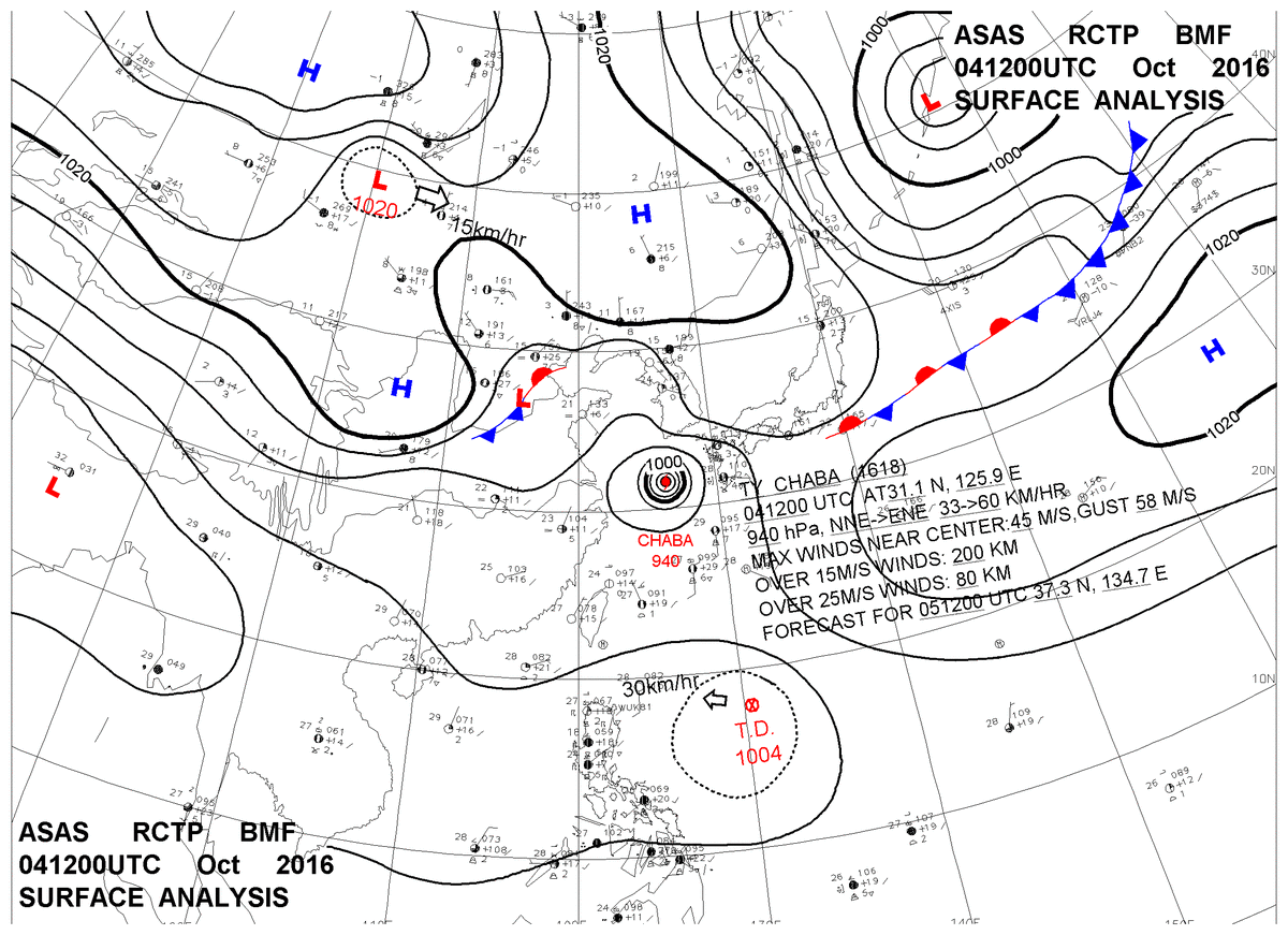 2016/10/04 12z sfcmap 天氣圖