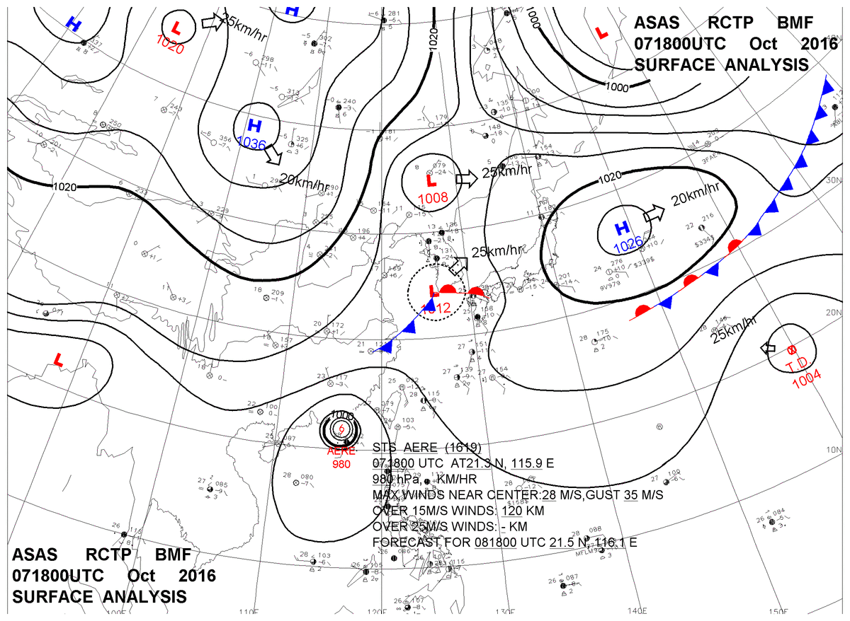 2016/10/07 18z sfcmap 天氣圖