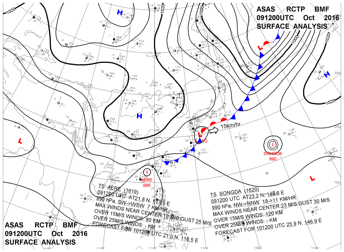 2016/10/09 12z sfcmap 天氣圖