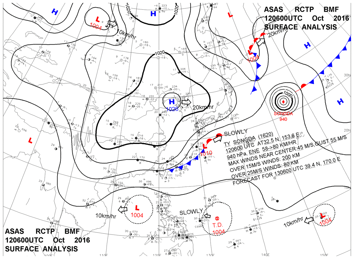 2016/10/12 06z sfcmap 天氣圖