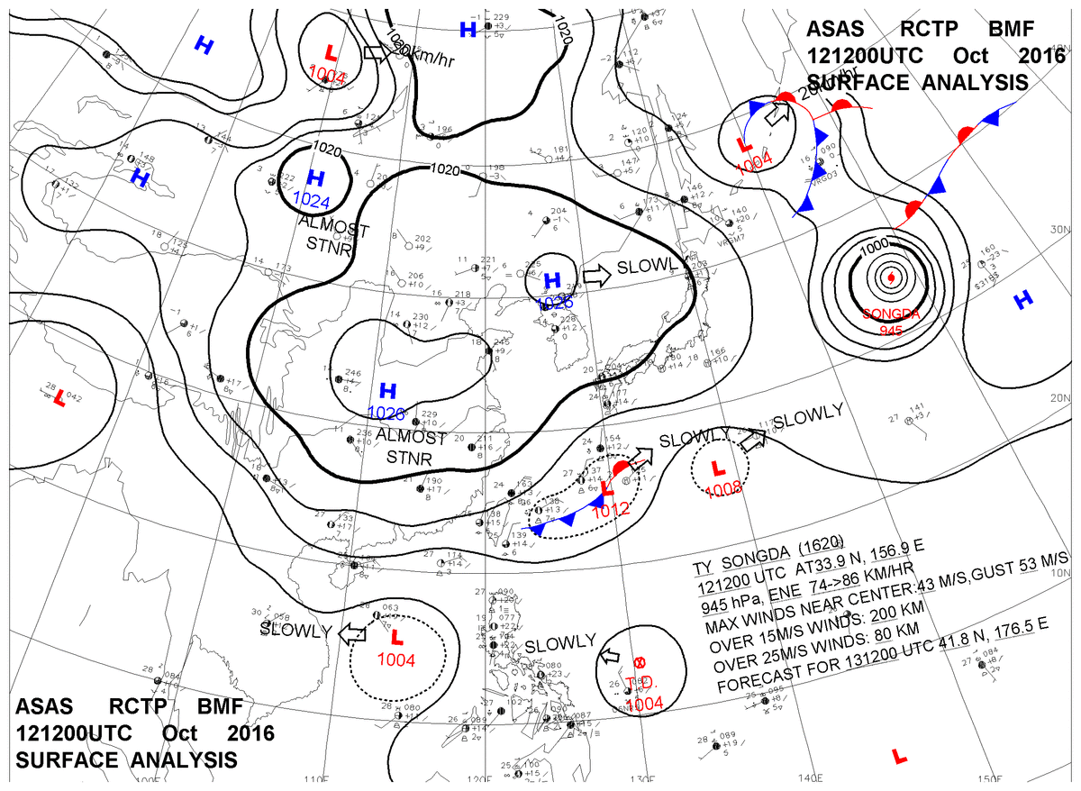 2016/10/12 12z sfcmap 天氣圖