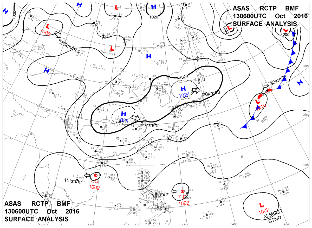2016/10/13 06z sfcmap 天氣圖