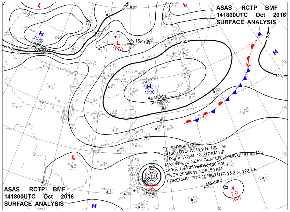 2016/10/14 18z sfcmap 天氣圖