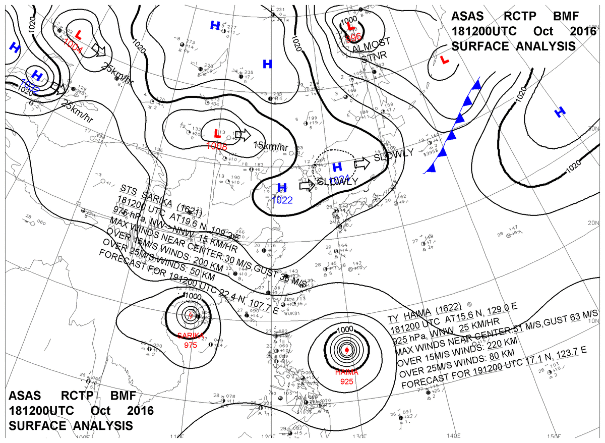 2016/10/18 12z sfcmap 天氣圖