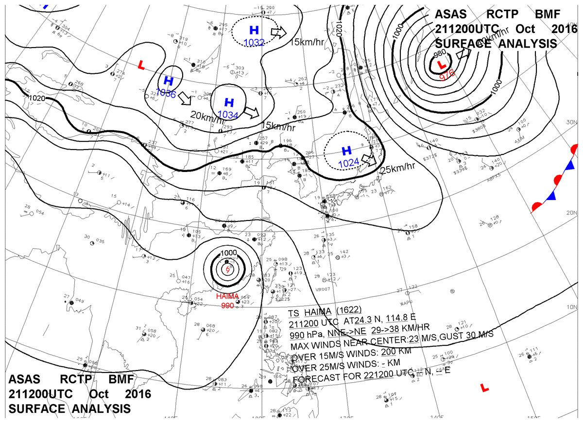 2016/10/21 12z sfcmap 天氣圖