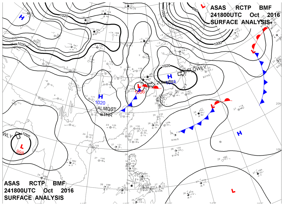 2016/10/24 18z sfcmap 天氣圖