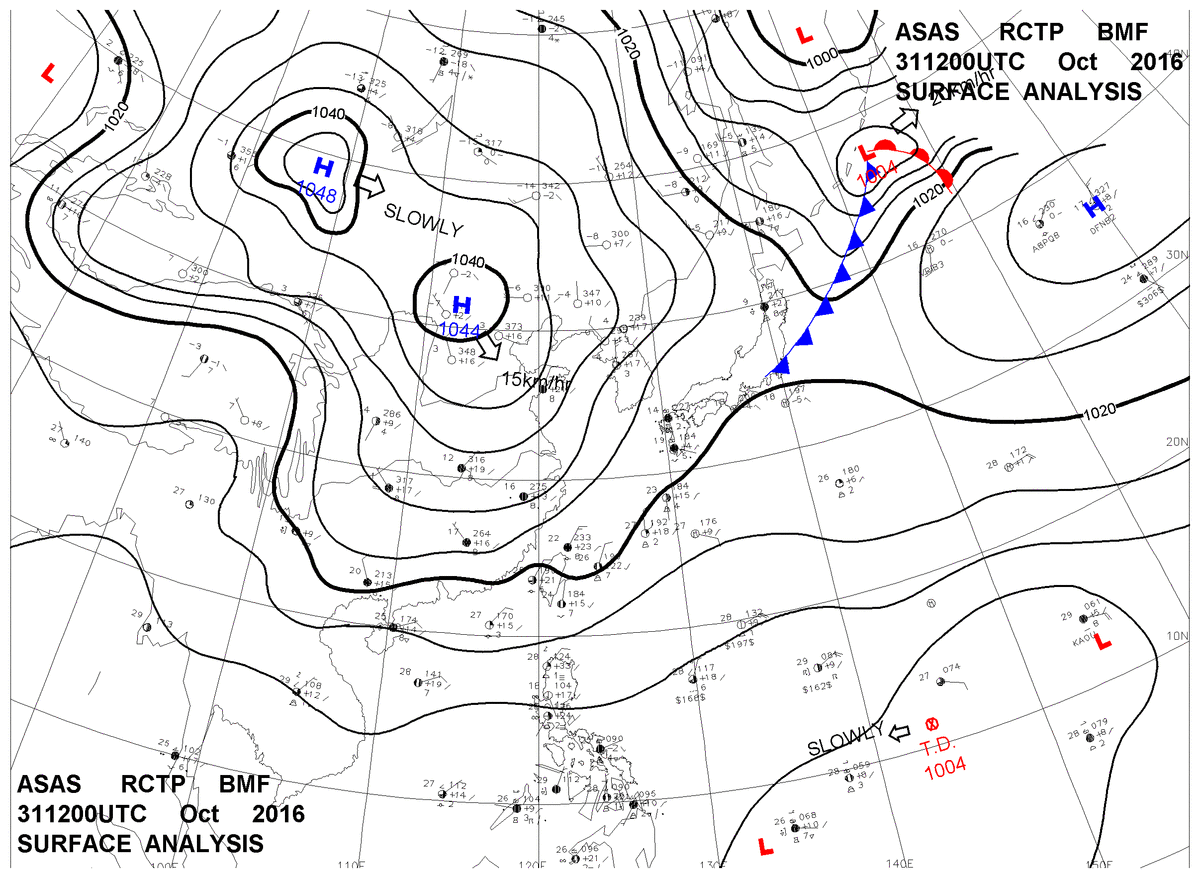2016/10/31 12z sfcmap 天氣圖