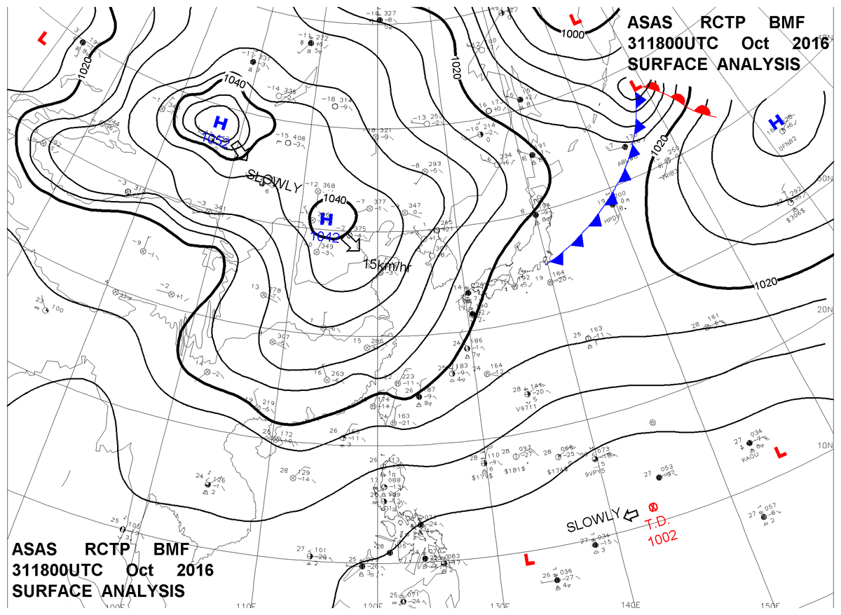 2016/10/31 18z sfcmap 天氣圖