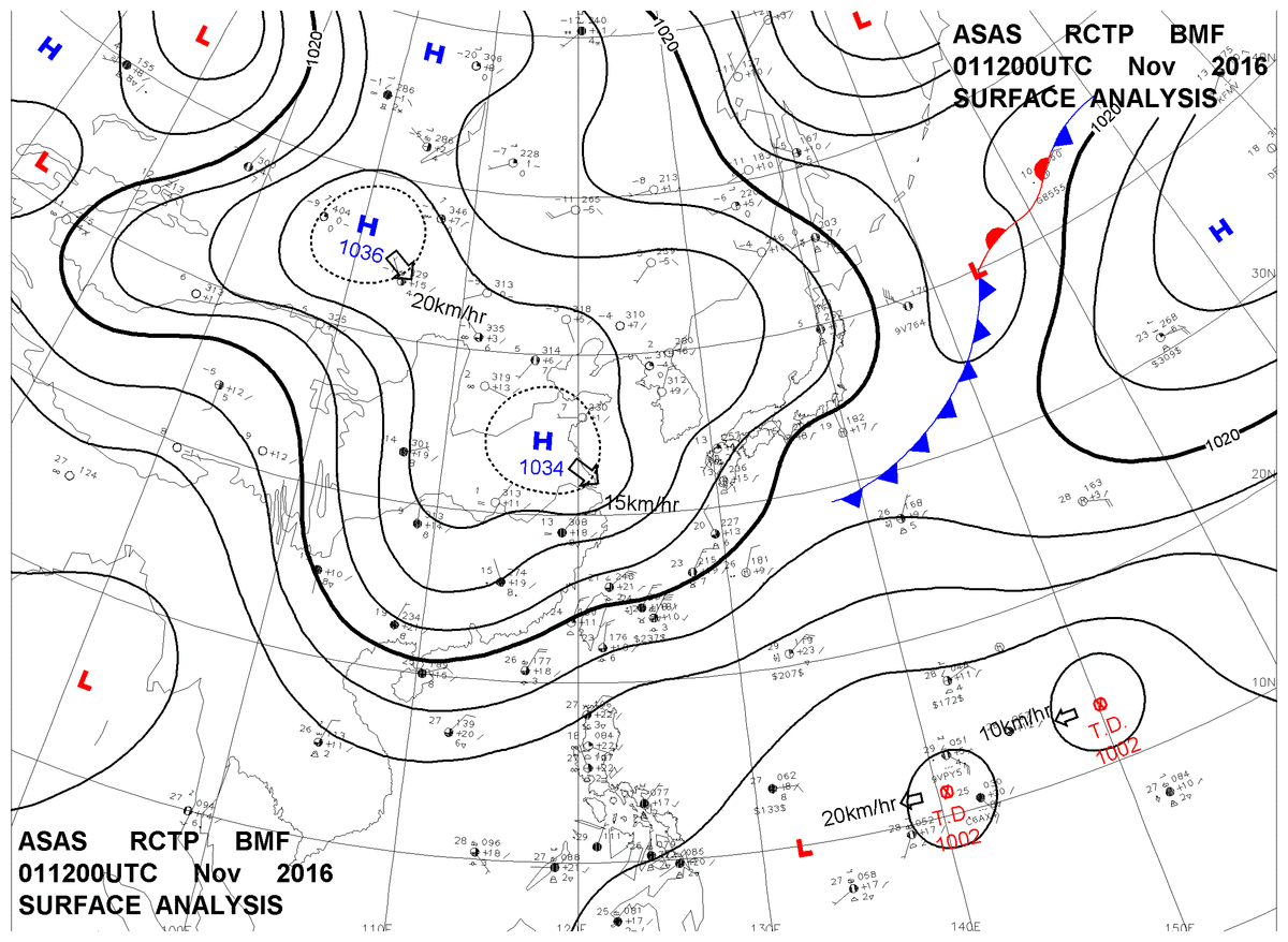 2016/11/01 12z sfcmap 天氣圖