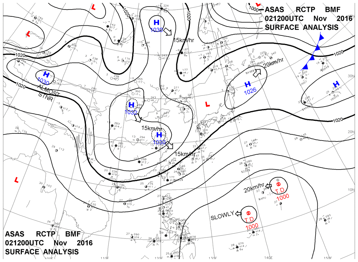 2016/11/02 12z sfcmap 天氣圖