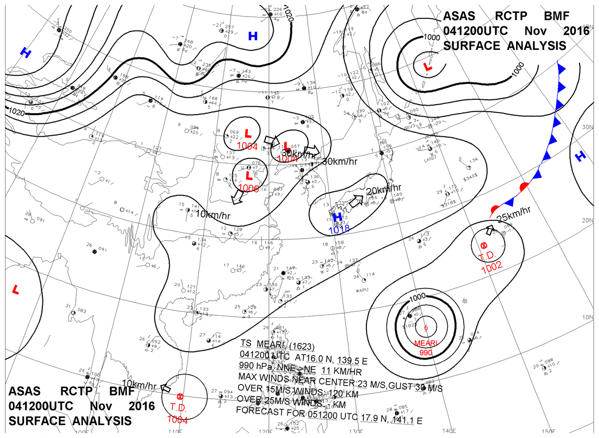 2016/11/04 12z sfcmap 天氣圖