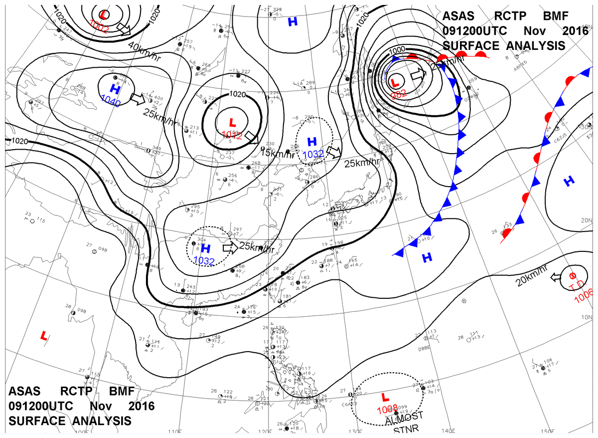 2016/11/09 12z sfcmap 天氣圖
