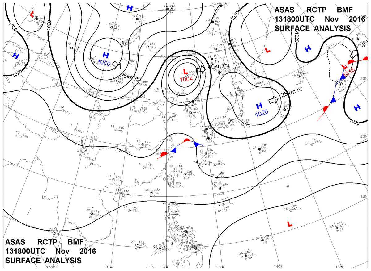 2016/11/13 18z sfcmap 天氣圖