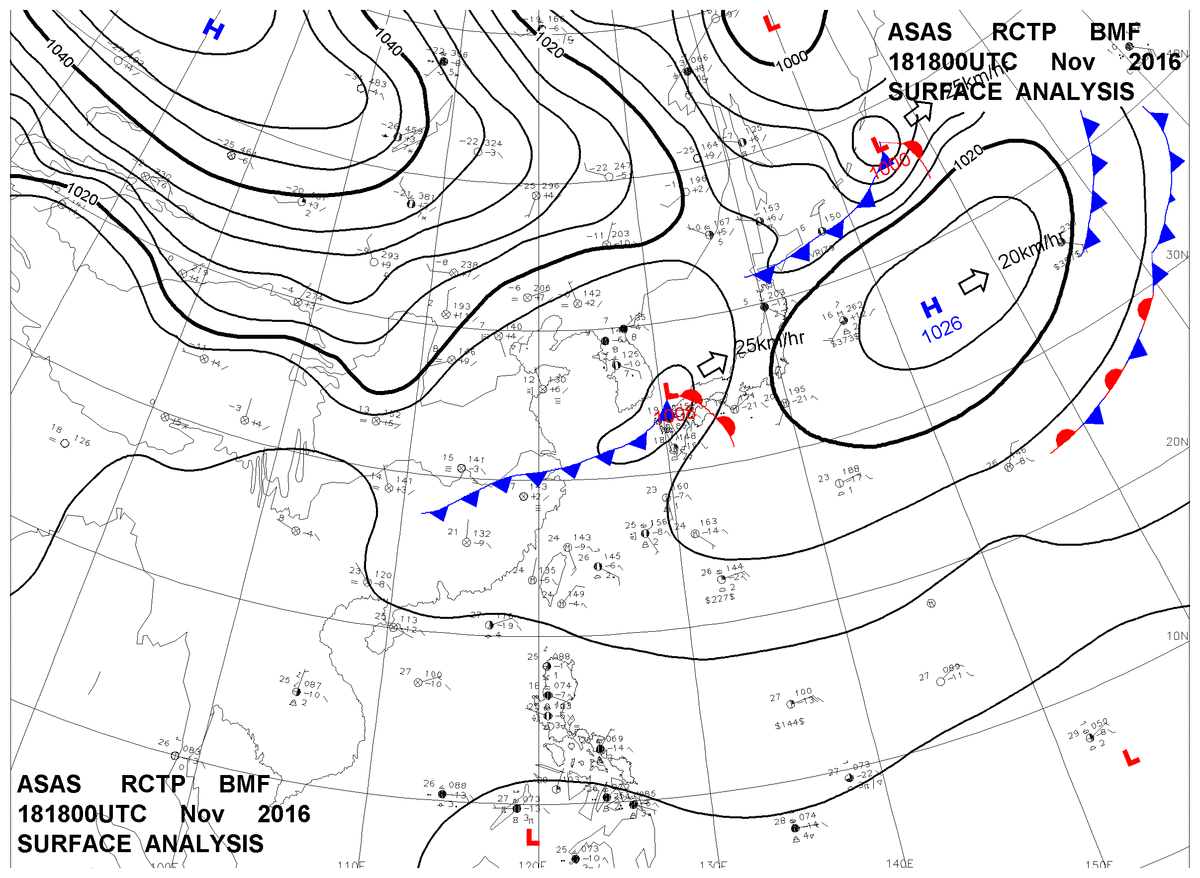 2016/11/18 18z sfcmap 天氣圖