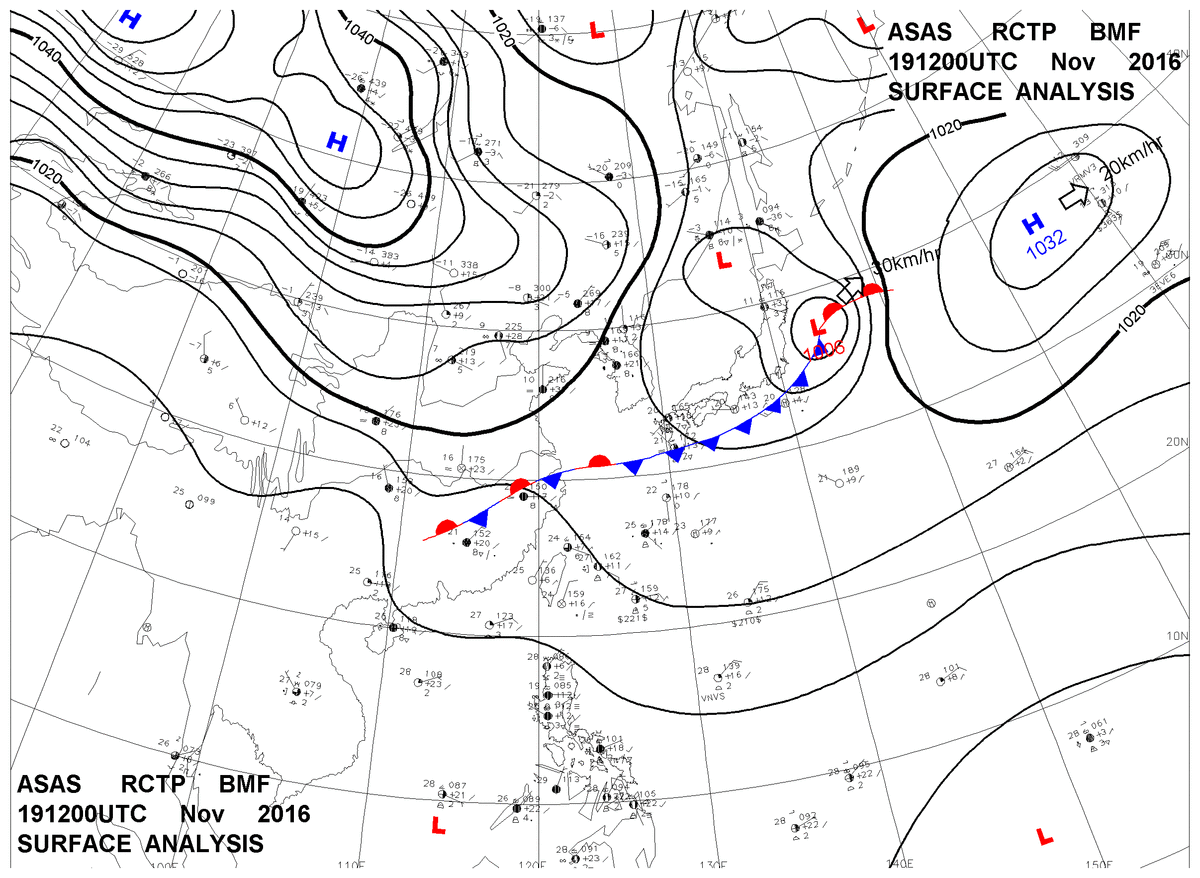 2016/11/19 12z sfcmap 天氣圖