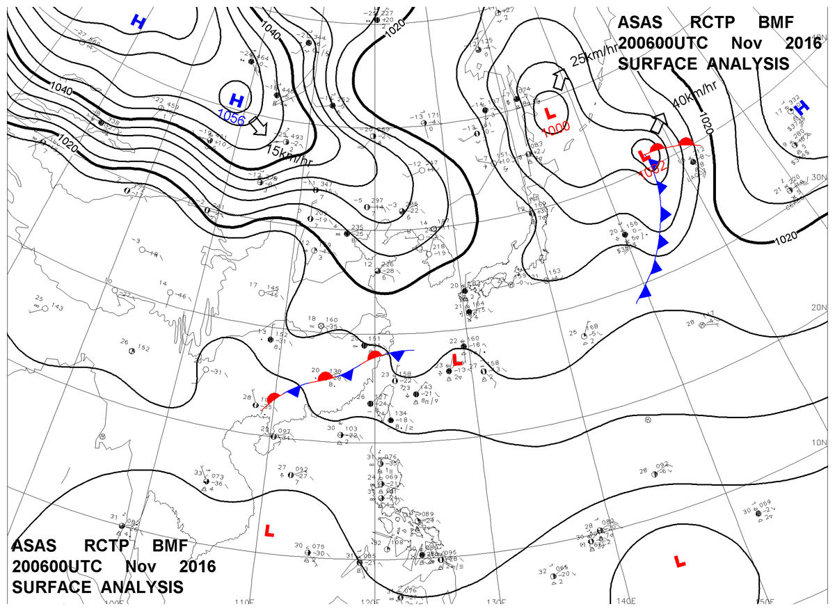 2016/11/20 06z sfcmap 天氣圖