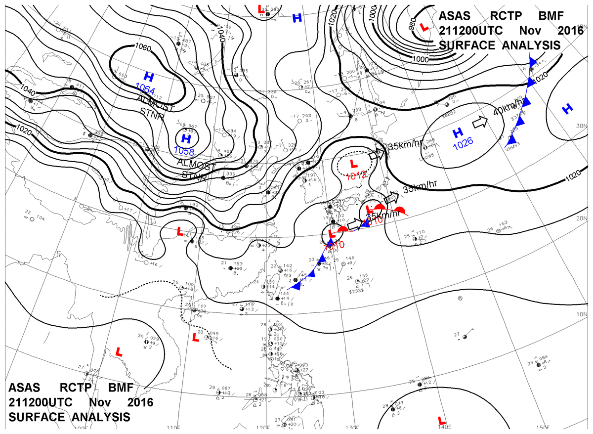 2016/11/21 12z sfcmap 天氣圖