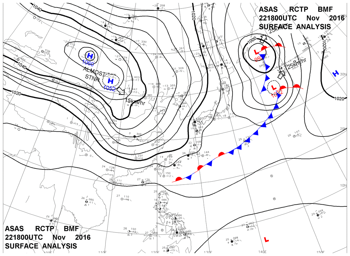 2016/11/22 18z sfcmap 天氣圖