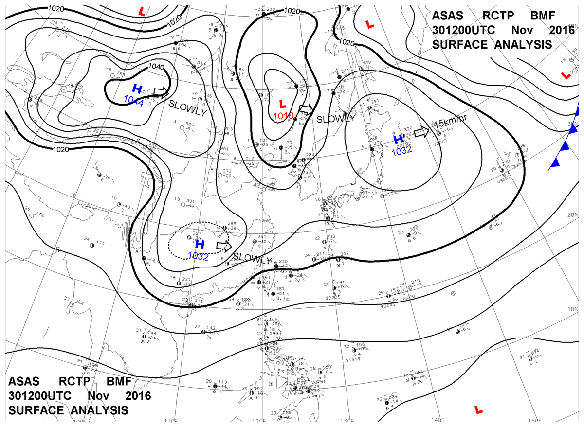 2016/11/30 12z sfcmap 天氣圖