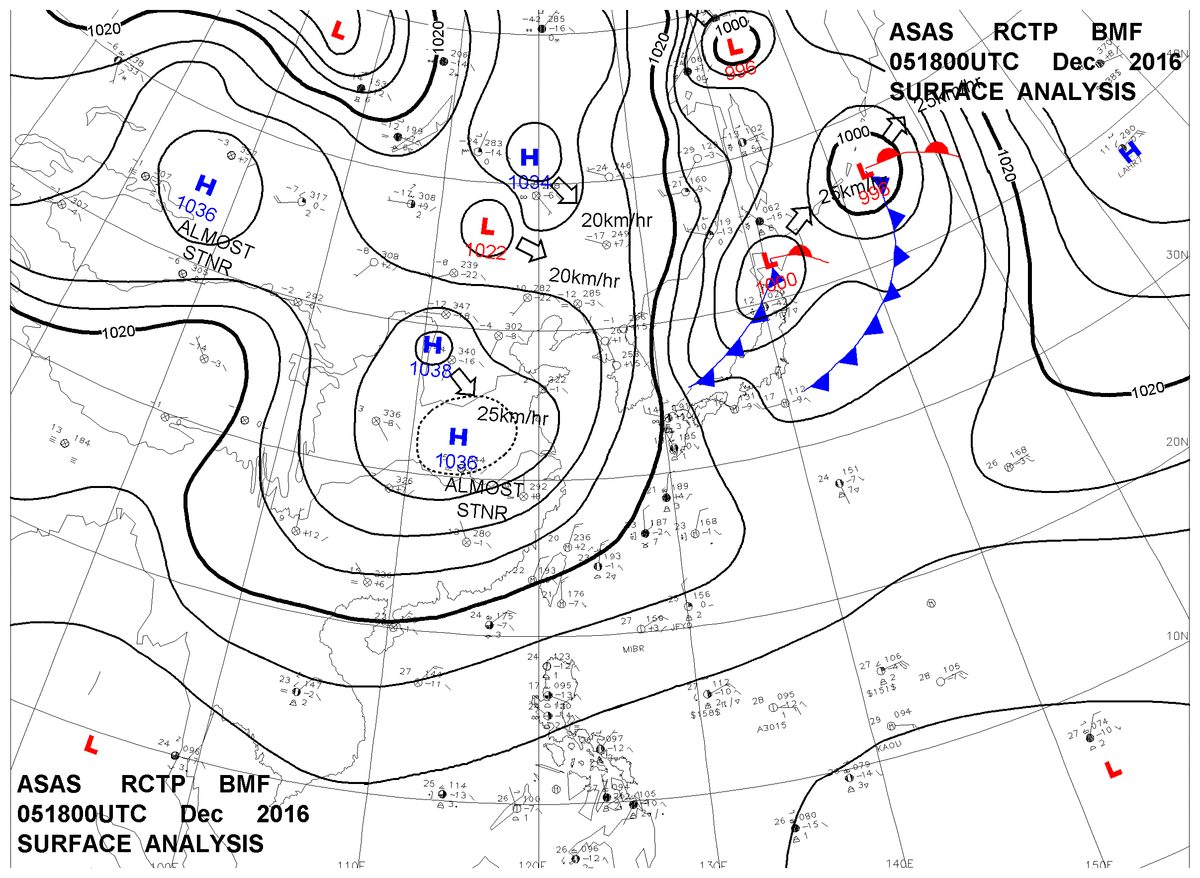 2016/12/05 18z sfcmap 天氣圖