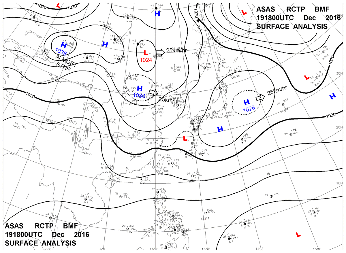 2016/12/19 18z sfcmap 天氣圖