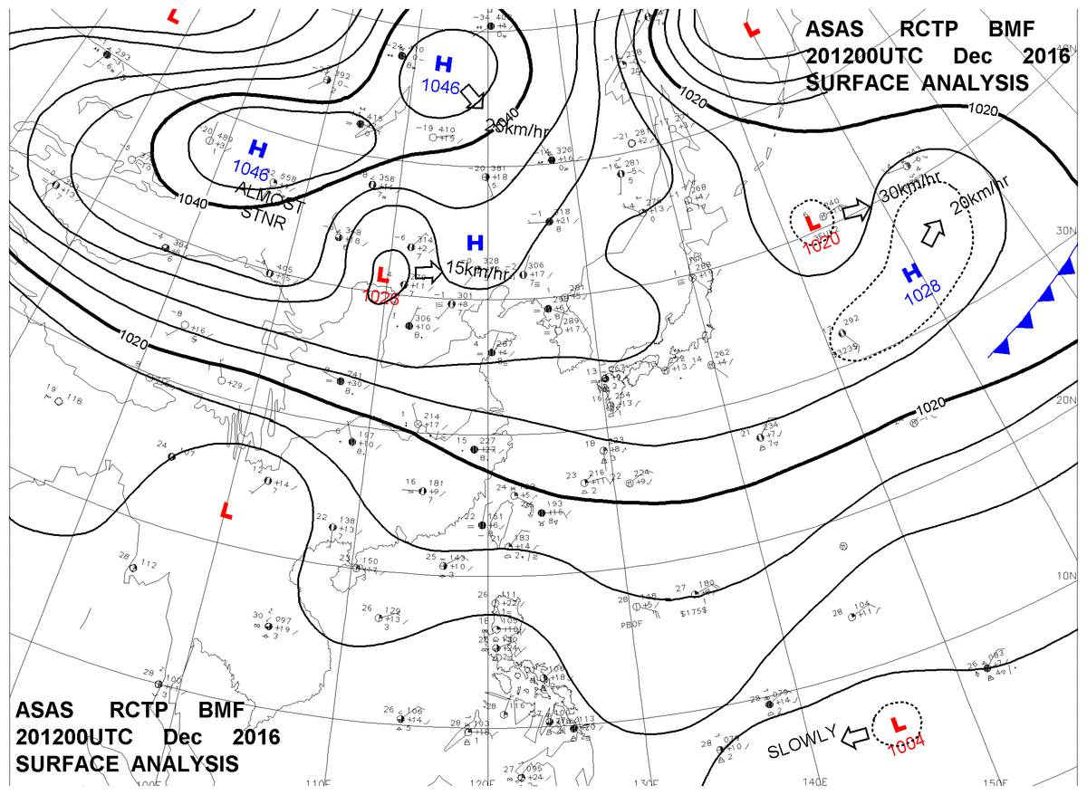 2016/12/20 12z sfcmap 天氣圖