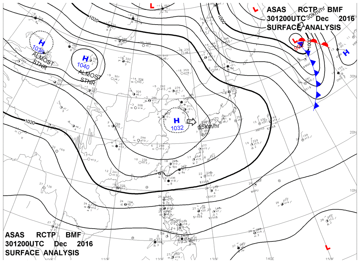 2016/12/30 12z sfcmap 天氣圖