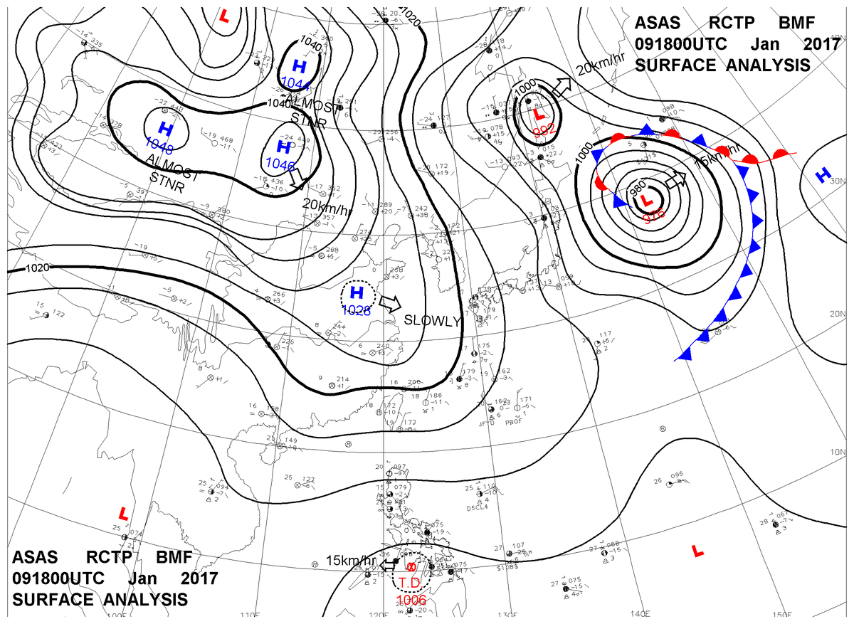 2017/01/09 18z sfcmap 天氣圖