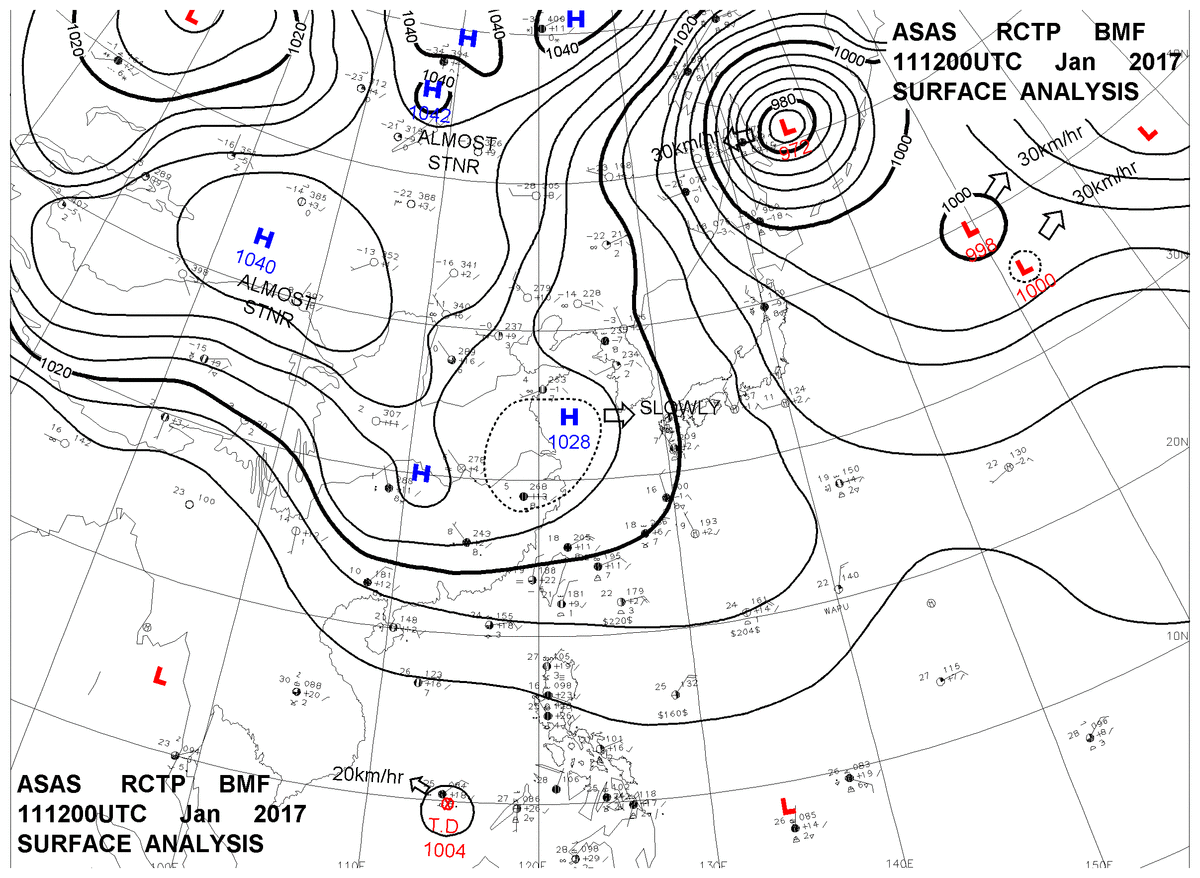 2017/01/11 12z sfcmap 天氣圖